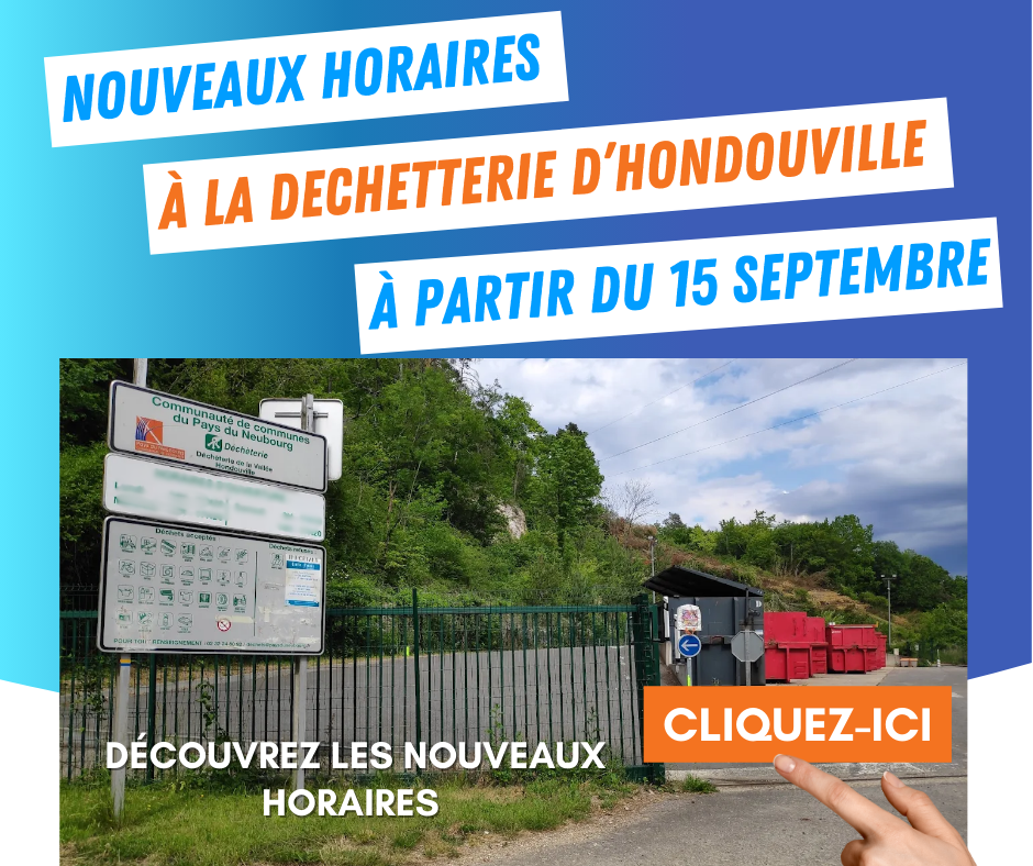 Vous êtes ici : Accueil / BAFA / Nouveaux horaires pour la déchetterie d’Hondouville ! / Bandeau Service Déchets Nouveaux Horaires