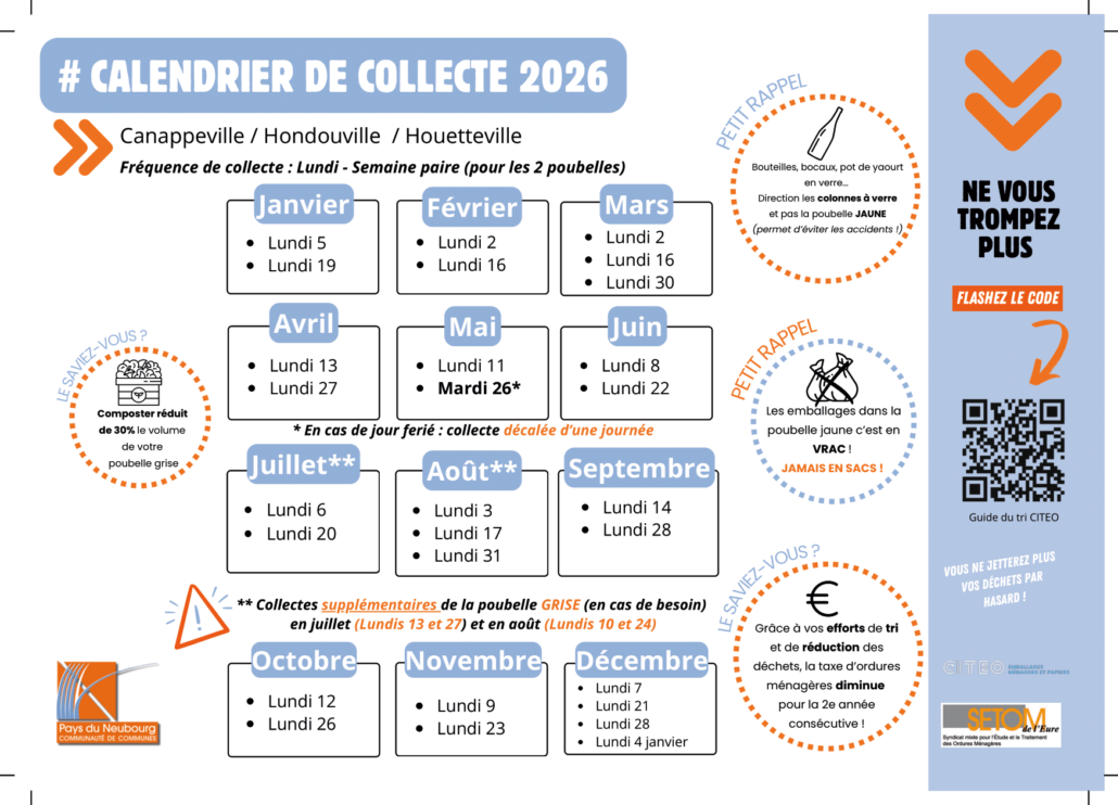 Vous êtes ici : Accueil / BAFA / Les calendriers de collecte 2026 sont là ! / Zone1 Calendrier 2026 1