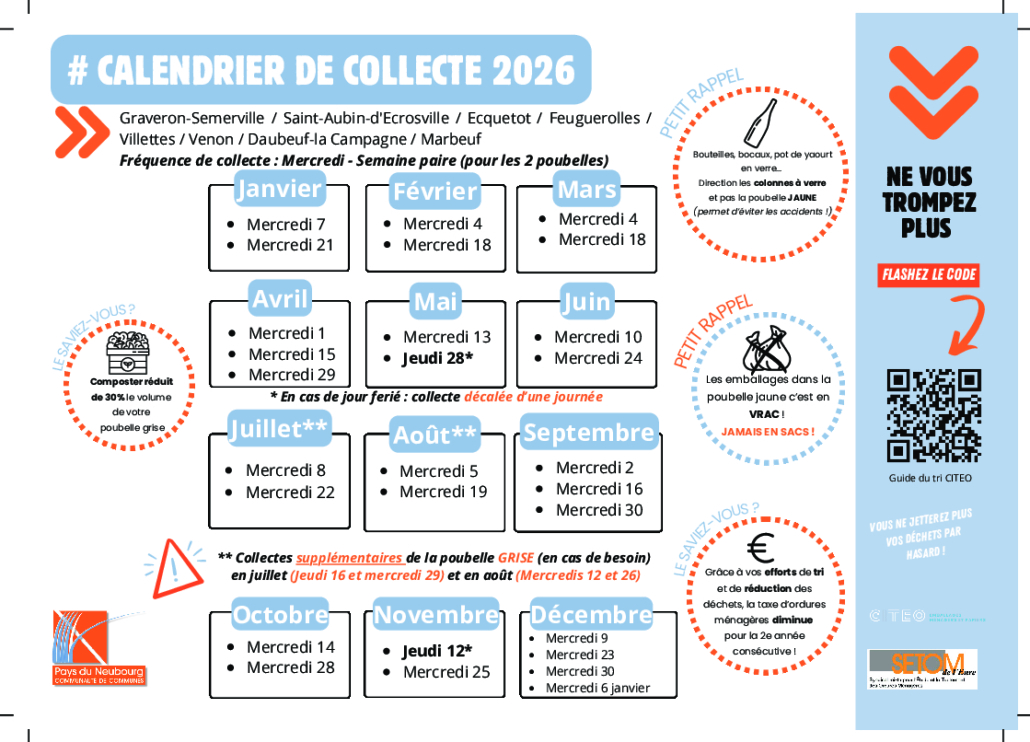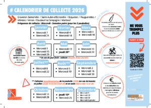 Vous êtes ici : Accueil / BAFA / Les calendriers de collecte 2026 sont là ! / Zone5 Calendrier 2026