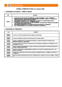 Vous êtes ici : Accueil / BAFA / Documents à télécharger – CONSEIL COMMUNAUTAIRE 1er DECEMBRE 2025 / DECISIONS PRESIDENT + BUREAU CC6.10.25
