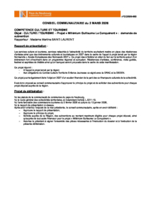 PROJET DELIB CC2026 003 CULTURE TOURISME DEMANDE SUBVENTION REGION MILLENIUM GUILLAUME LE CONQUERANT