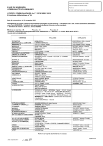 Vous êtes ici : Accueil / BAFA / La Comcom / Conseils / Bureaux / CC 1.12.2025 EXTRAIT DELIB N°19 AVEC AR PREF
