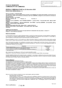 Vous êtes ici : Accueil / BAFA / La Comcom / Conseils / Bureaux / DELIBERATION BUREAU 22 12 2025 N°2 22 12 2025 AR PREF
