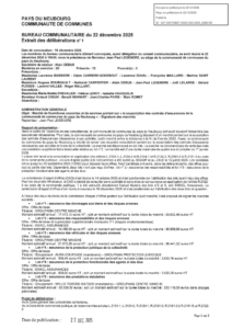 Vous êtes ici : Accueil / BAFA / La Comcom / Conseils / Bureaux / DELIBERATION BUREAU 22 12 205 N°1 22 12 2025 AR PREF
