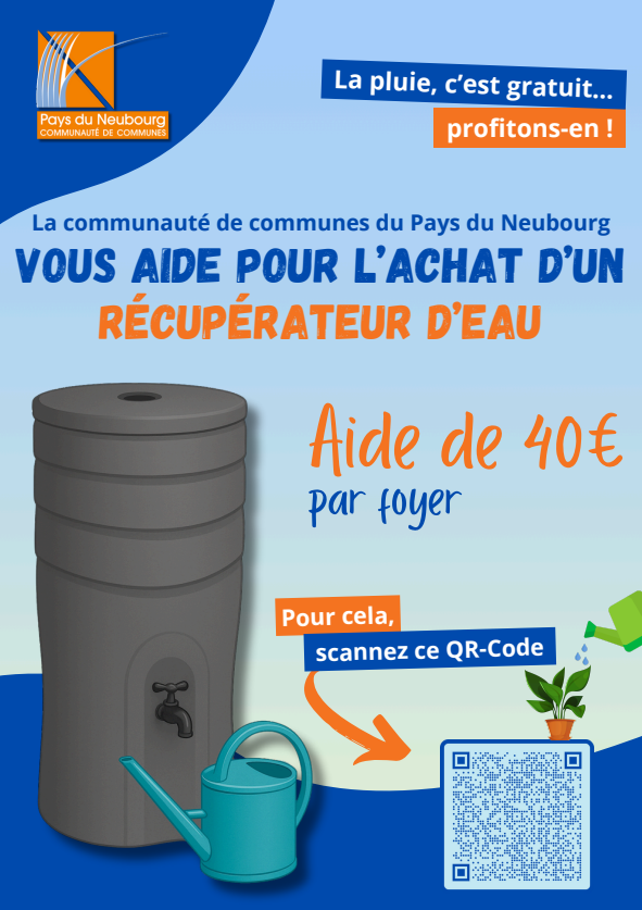 Dans le cadre de son Plan Climat-Air-Energie Territorial (PCAET), la communauté de communes du Pays du Neubourg a décidé d’octroyer une aide financière aux particuliers, sous forme d’une subvention, à l’occasion de l’achat d’un récupérateur d’eau de pluie dans les conditions définies ci-après.